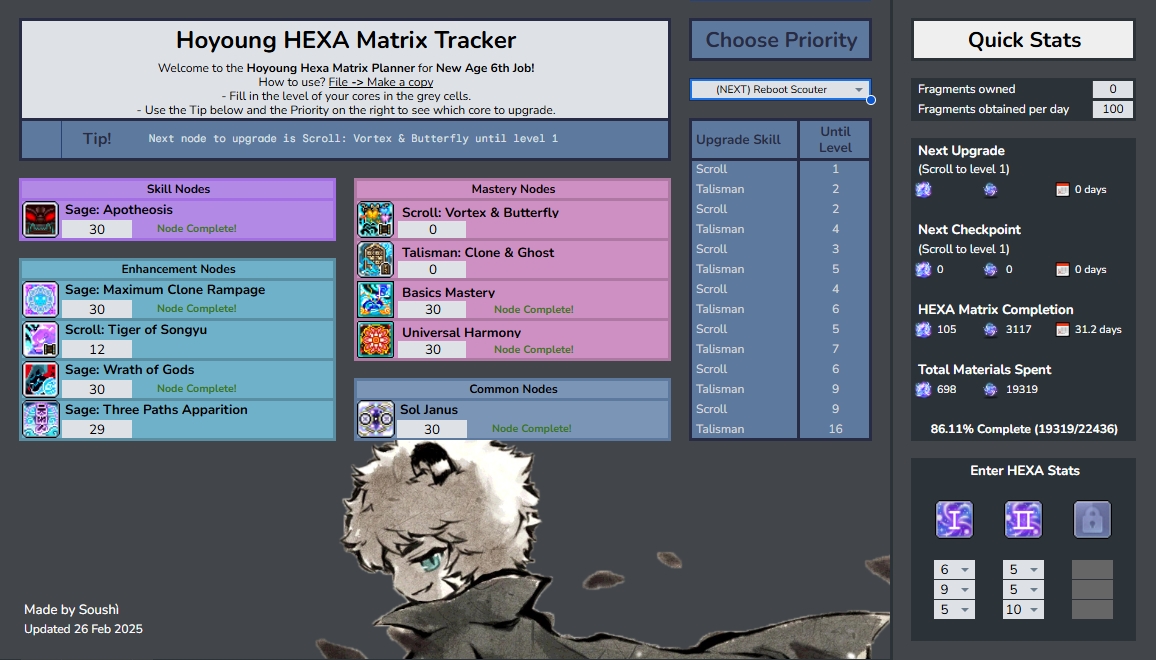 The heroic hexa priority displayed is a simplifed version, which gives similar FD with fewer steps. For full optimization and extra breakpoints, check MapleScouter or the Hoyoung HEXA Matrix Tracker sheet.